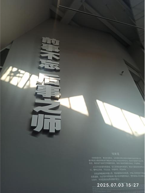 出馆时墙上的“前事不忘后事之师”警醒着中国人民)