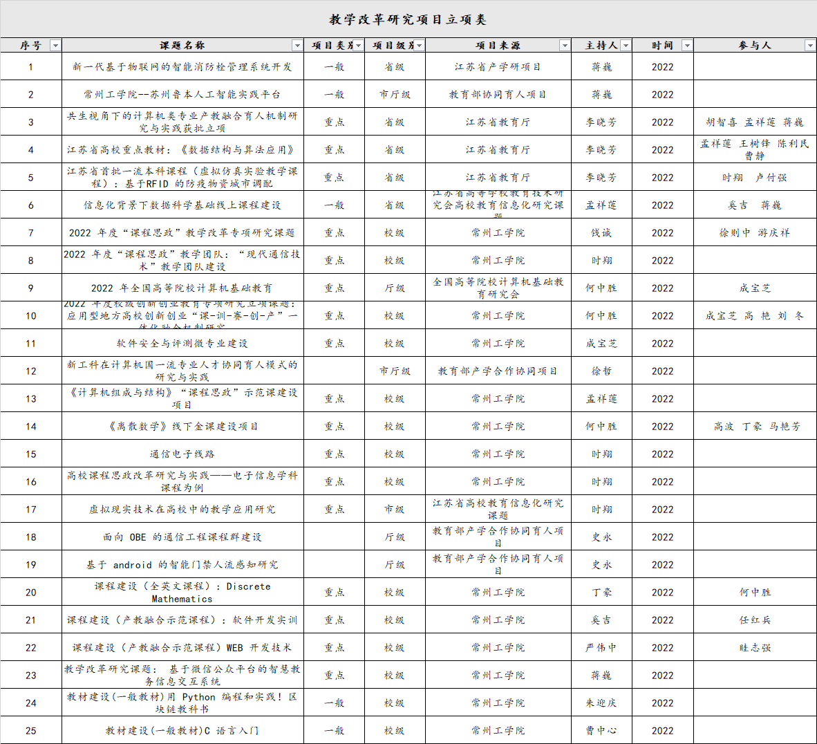2022年校级教学改革研究项目立项