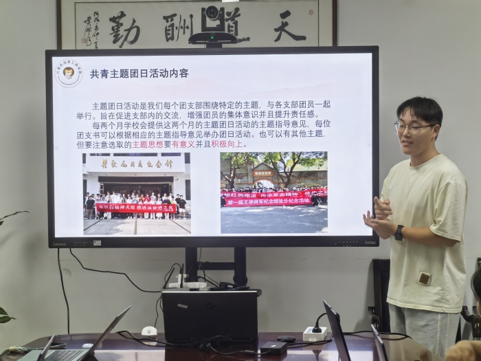 丁一聚焦团委核心工作,首先介绍学院团委概况、团委各部门职能,明确其在团务统筹与思想引领中的关键作用;随后详解团支部建设、共青团主题活动申报材料规范、PU活动开展要点以及团支部委员会的分工协作,重点强调团支书作为学生骨干应具备的责任与担当。