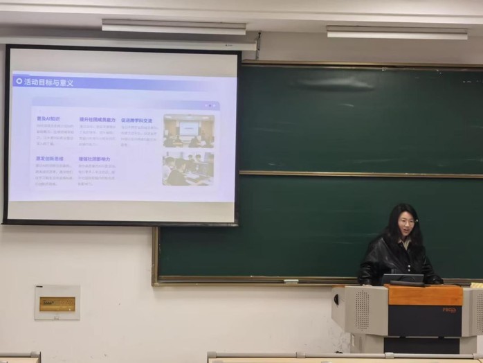 本次讲座聚焦前沿生成式AI技术的落地应用,由23软件三班张彩怡同学担任主讲。她首先以生活、学习场景中的AI应用案例切入,用通俗易懂的语言拆解了大语言模型、AIGC工具的基本运行逻辑,系统梳理了自动化办公、AI辅助学习、创意内容生成等领域的应用边界,帮助同学们破除对AI技术的认知误区。